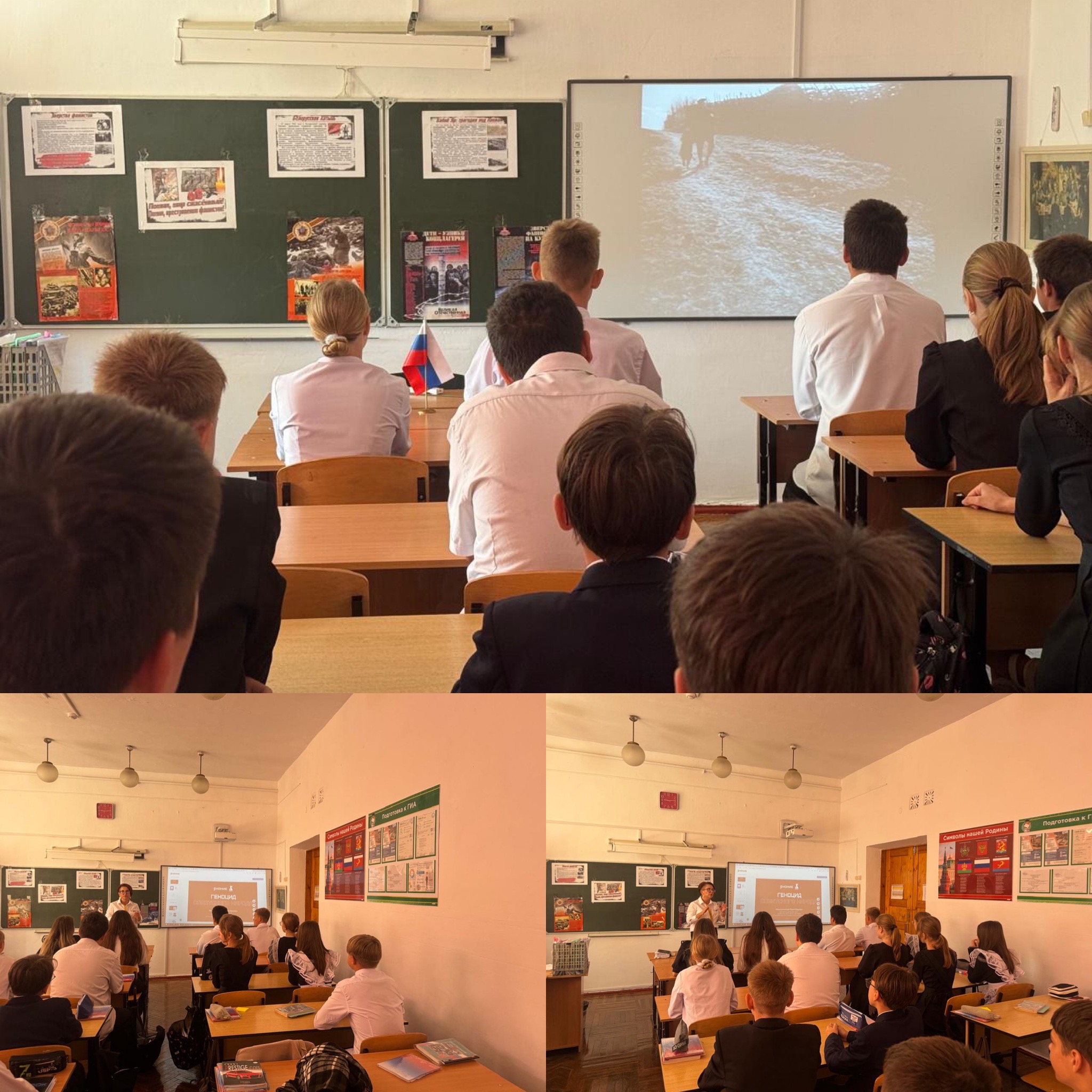 Советник директора Демянюк Юлия Ивановна организовала программу мероприятий для старшеклассников нашей школы. В рамках воспитательной работы была проведена серия увлекательных занятий, направленных на формирование патриотического сознания и нравственного воспитания молодёжи. Для учеников старших классов состоялся кинолекторий «Помните», включавший просмотр и обсуждение знаменитого фильма Сергея Бондарчука «Судьба человека» по мотивам одноимённого рассказа Михаила Шолохова. Мероприятие прошло в формате «живого микрофона». Ребята активно обсуждали темы войны, мужества и стойкости советских солдат, проявленных во времена Великой Отечественной войны. Особое внимание уделялось личному подвигу главного героя Андрея Соколова, воплощавшего образ простого солдата-фронтовика, прошедшего все испытания войны и сохранившего человеческое достоинство. Кроме того, специально ко Дню памяти жертв фашизма, для восьмиклассников была организована тематическая лекция «Геноцид советского народа». Советник директора напомнила ребятам о страшных событиях Второй мировой войны, подчёркивая важность сохранения исторической памяти и недопущения повторения подобных трагедий в будущем. Лекция прошла в формате традиционного классного часа, способствуя глубокому осмыслению проблемы и формированию гражданской позиции школьников. Подобные мероприятия помогают школьникам лучше понять историю своей страны, осознать ценность мира и уважение к ветеранам, отдавшим здоровье и жизни ради свободы и независимости Родины.